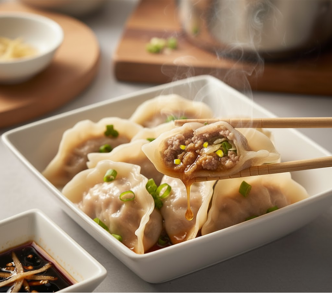 ゆっくりと眠るように旨味を引き出した豚肉が、一つひとつ丁寧に包まれた「夢見る台湾水餃子」です。